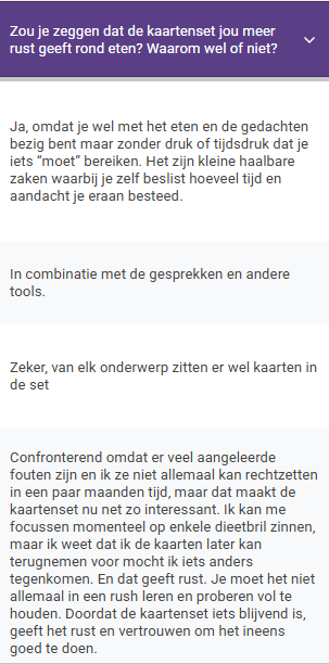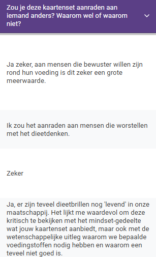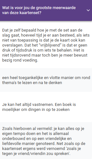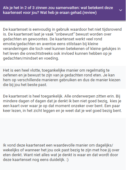 Zeker. De kaarten zijn een mooie aanvulling op begeleiding, trajecten of therapie. Ze kunnen je helpen om inzichten te verankeren en bewuster om te gaan met dagelijkse uitdagingen rond eten en zelfzorg.